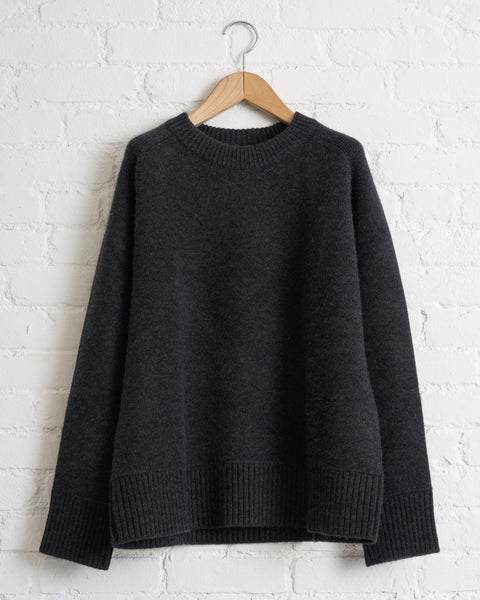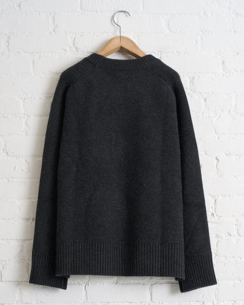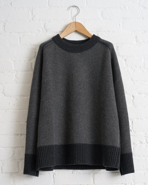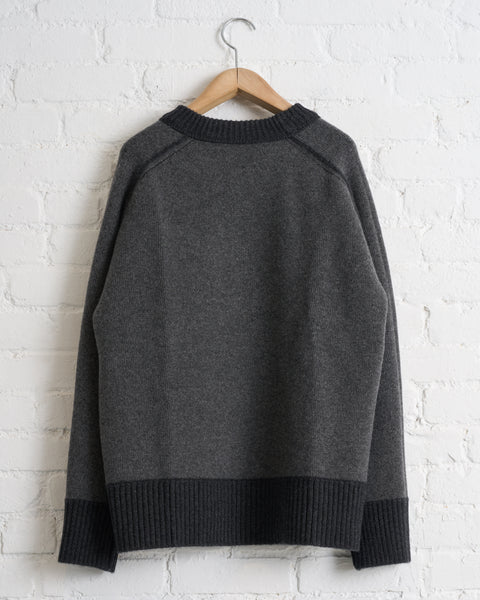 180 THE STORE, REVERSIBLE 6 PLY CASHMERE CREWNECK, CHARCOAL AND FLANNEL