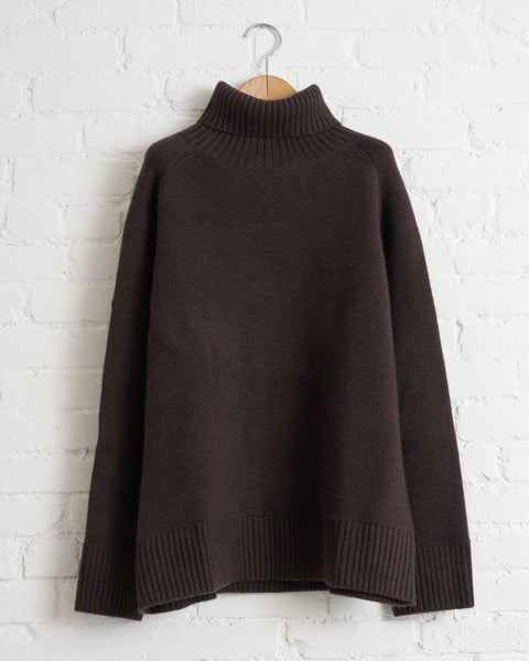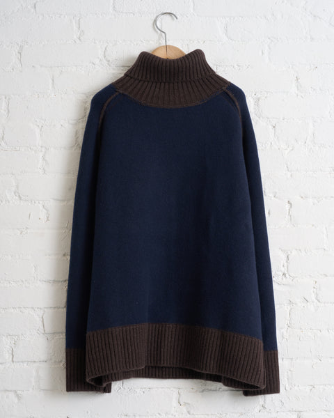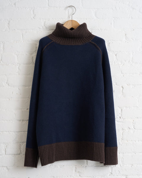 180 THE STORE, REVERSIBLE 6 PLY CASHMERE TURTLENECK, BROWN AND NAVY